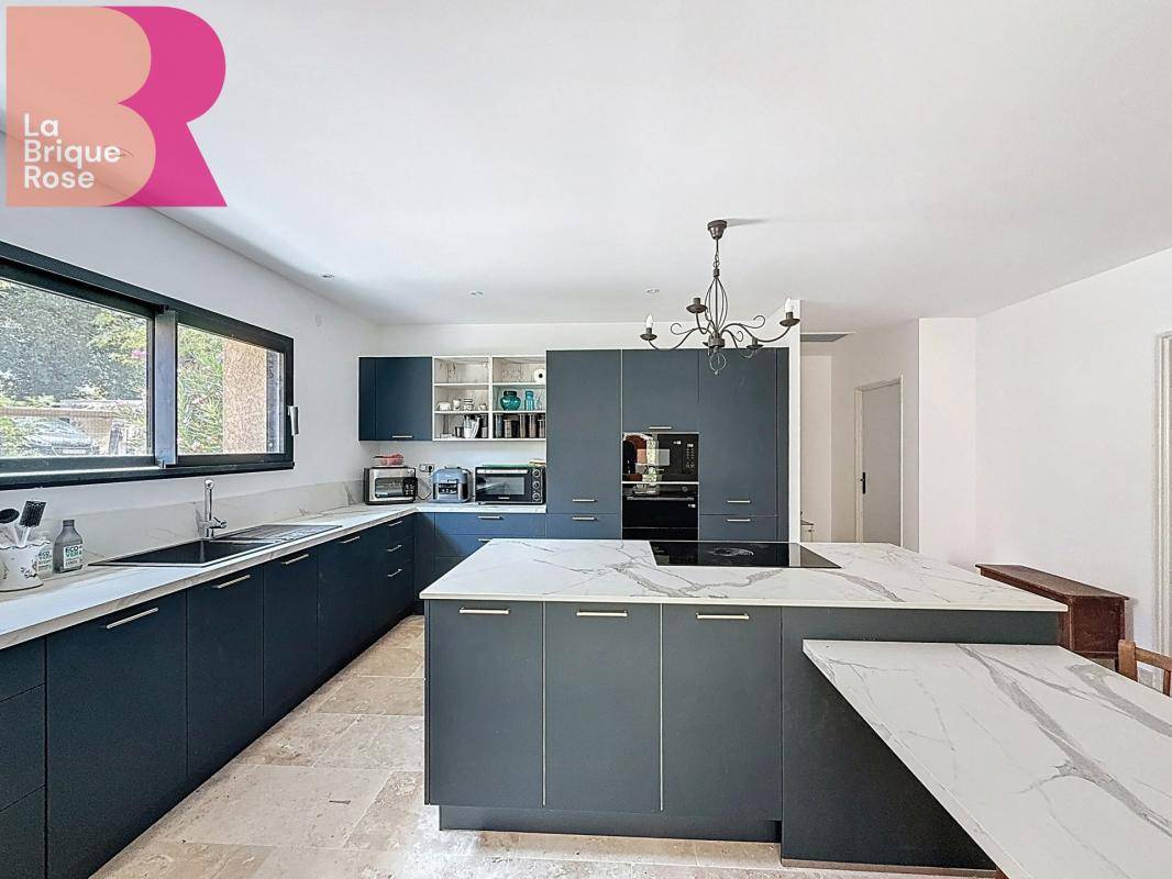 La cuisine équipée, pensée pour les gourmets, dispose d'un îlot central en céramique et d'un agencement optimal sur 14 m².