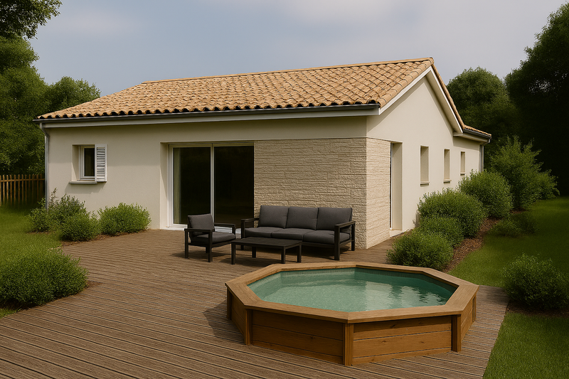 TERRAIN ET MAISONMaison contemporaine de 85 m² avec pièce principale ensoleillée, 3 chambres, salle d’eau et terrain facile d’entretien. Opportunité à saisir. Contact : (Numéro supprimé)