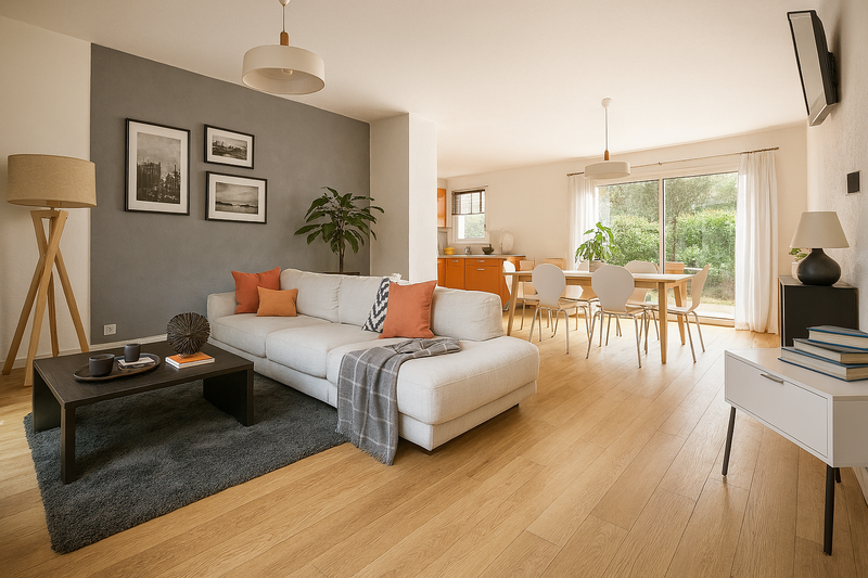 Maison neuve de 90 m² avec superbe pièce de vie lumineuse ouverte sur cuisine, 3 chambres,salle de bains moderne et terrain au calme. Idéal primo-accédants. Contact : (Numéro supprimé)