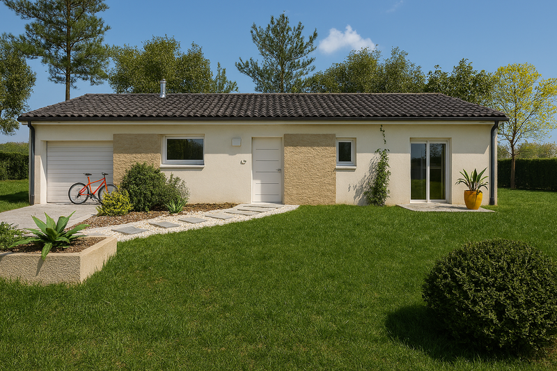 TERRAIN ET MAISONMAISON NEUVE RT 2020 T5 – 4 CHAMBRES & JARDIN 700 m²Maison Neuve RT 2020 de plain-pied, 4 chambres, offrant un cadre de vie moderne et éco-performant.Idéale pour famille recherchant grand espace, confort premium et faibles charges. Grand terrain de 700 m², terrasse couverte, et prestations haut de gamme.Les Atouts majeurs :RT 2020 / RE 2020 : Garantie d’une performance énergétique maximale et de factures minimales.- Système CVC (Chauffage/Climatisation) Ribo : Chauffage et rafraîchissement réversible par pièce.- Pièce de vie lumineuse de 50 m² : espace convivial ouvert sur un jardin paysager de 700 m².- Cuisine Aménagée Premium : Cuisine In’concept entièrement équipée avec du matériel de qualité.- Peintures faites, salles de bains équipées, aménagements extérieurs réalisés.Côté nuit, l’agencement est idéal :- Une Suite Parentale complète avec un espace dressing dédié et une salle d’eau privative avec WC.- Trois chambres supplémentaires lumineuses.- Une salle d’eau secondaire avec double vasque, douche à l’italienne et sèche-serviettes.- Un WC séparé et une buanderie pratique.Confort et la durabilité :- Isolation renforcée : Construction sous norme RT 2020 avec plancher hourdis isolé.- Menuiseries & Sécurité : Menuiseries traditionnelles avec domotique intégrée.- Extérieurs Soignés : Garage fermé isolé, murette d’entrée avec seuil pour portail coulissant, grillage posé.- Équipements Modernes : Prise pour voiture électrique installée, raccordement à l’assainissement intégralement payé.- Aménagements : Parking extérieur stabilisé (0/20 et bordures) et remise des terres après construction pour un terrain prêt à l’emploi.Frais de notaires réduit 4%, taxe aménagement payée et exonération de la taxe foncière pendant 2 ans.Cette maison se distingue clairement des constructions classiques. Avec ses prestations haut de gamme et ses options exclusives, c’est une opportunité unique sur le marché que vous ne devriez pas laisser passer.Prix de vente : 329 000 €Contactez-nous sans tarder pour organiser votre visite et découvrir votre futur chez-vous.
