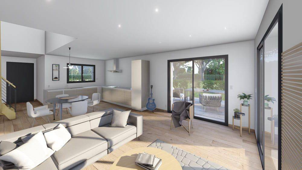TERRAIN ET MAISONDevenez propriétaire de cette maison confortable de 105 m2 composée d’une belle pièce de vie lumineuse de 43 m2 et de 4 chambres . Sur un terrain de 301 m2 situé sur la Commune de Pont Péan, ce projet de maison contemporaine saura vous séduire. Rencontrons-nous !Permis de construire prêt à déposer. Prix clé en main tous frais inclus (Frais de notaire, bornage, viabilisation et raccordements, assurance dommage ouvrage) à partir de 299 750 € TTC FRAIS D’AGENCE INCLUS. Disponibilité sous réserve de notre partenaire foncier. Prix susceptible d’évoluer (source tarif 2025) hors adaptation au sol.Pour votre projet, faites confiance à Cre’Actuel, créateur et constructeur de maisons individuelles. »Visuels non contractuels. Maison conforme à la règlementation RE 2020 sous réserve de l’implantation et de l’exposition du projet de construction sur le terrain. »