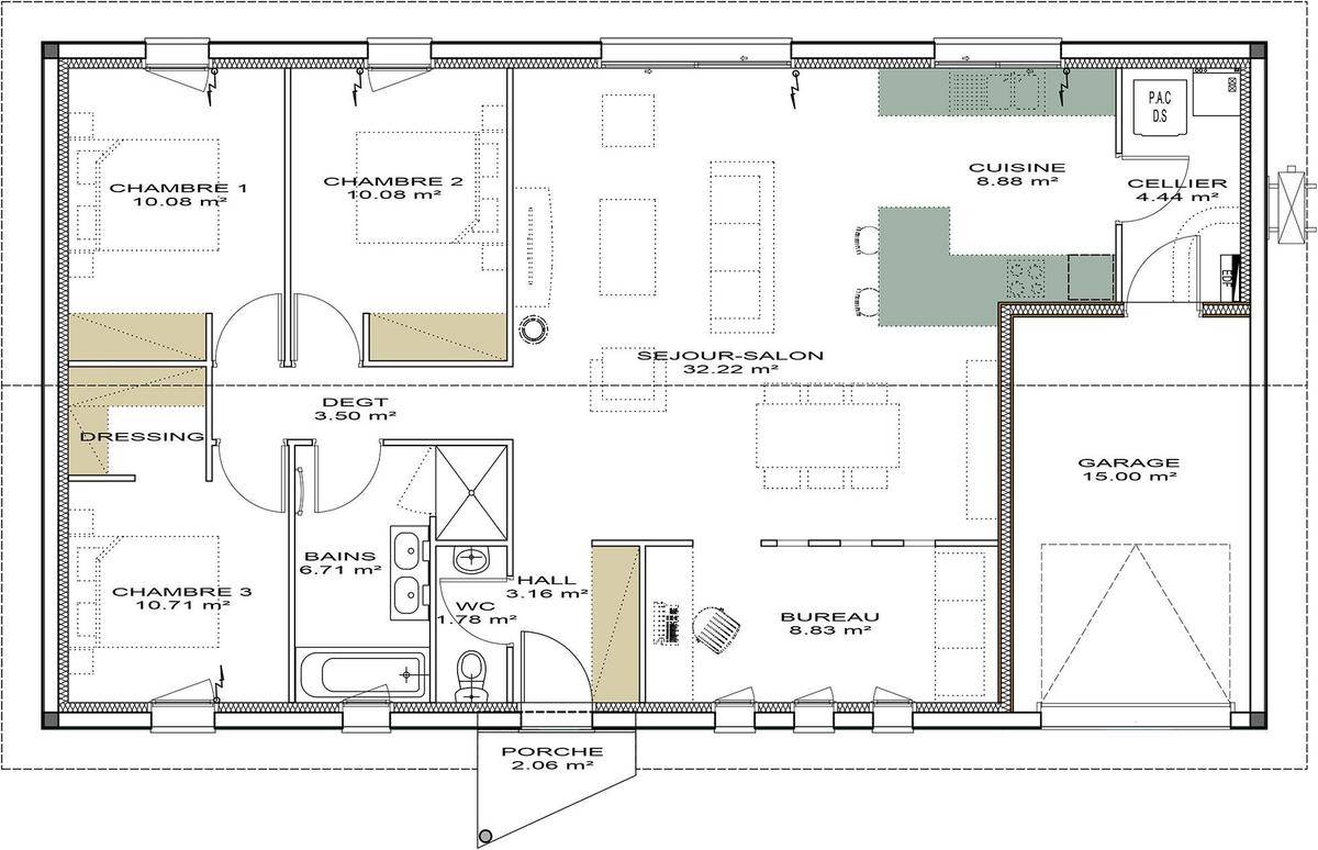 TERRAIN ET MAISONProche centre bourg , IGC vous propose une projet de construction moderne sur un terrain 500 m². Une maison plain pied et fonctionnelle d’une surface habitable de 100 m². Séjour lumineux, pièce de vie ouverte sur la cuisine, séjour traversant, grandes baies vitrées, terrasse, maison modulable, espaces de rangements, garage. Sa façade rythmée et son porche stylisé lui procure une allure contemporaine. Contactez votre agence IGC de Dax pour réaliser votre maison « confort nouvelle génération » RE2020.Construction IGCGuillaume Bon
