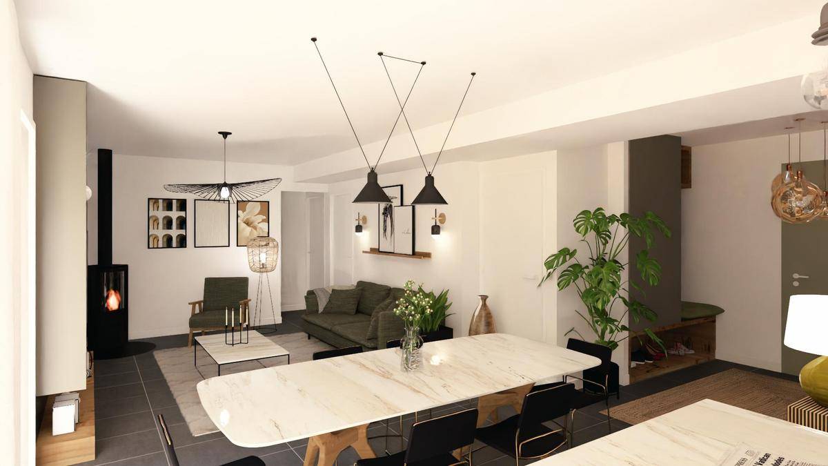 La maison en forme de L, se compose d'une pièce de vie triple exposition avec cuisine ouverte, de quatre chambres, une salle d'eau, un cellier et un WC indépendant. Cette maison fonctionnelle de 100m² conviendra aussi bien pour votre projet de résidence principale ou secondaire ; ou encore pour un projet d'investissement locatif.