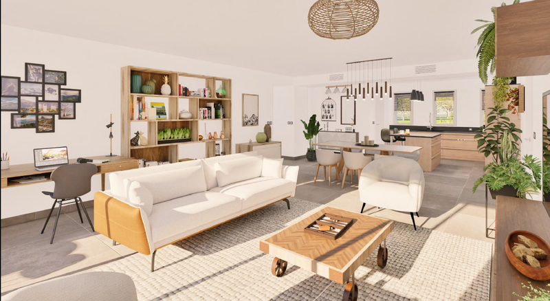 Elle seprésente 4 pièces, dont 1 suite parentale, ainsi que deux chambres. Au centre de la maison, vous découvrirez un espace de vie lumineux de plus de 50m2.Coté extérieur, le terrain de 1265 m2 permet d'aménager un jardin selon vos envies. Le bardage ainsi que l'aménagement extérieur reste à charge client.