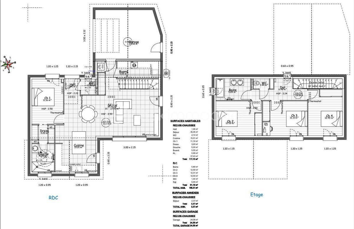 Au rez-de-chaussée : 1 grande pièce de vie lumineuse, 1 suite parentale avec salle d'eau et dressing, 1 buanderie, 1 WC
