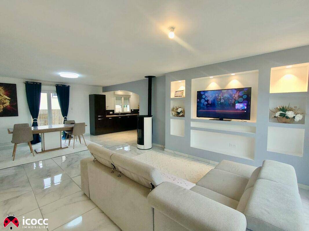 TERRAIN ET MAISONMaison neuve à vendre, à 10 minutes de Luçon et 30 minutes des plages.Située à seulement 10 minutes de Luçon et à 30 minutes des plages, cette maison neuve, construite il y a 3 ans, est l’opportunité idéale pour ceux qui recherchent le confort d’une construction moderne dans un cadre paisible. Proche des commodités tout en bénéficiant d’un environnement calme, cette maison de plain-pied offre tout le confort souhaité pour une vie de famille.Descriptif de la maison :D’une surface habitable de 89,9 m², cette maison de 5 pièces se compose d’une pièce de vie de 45,05 m2, de trois chambres avec parquet, dont une suite avec douche privée (10,20 m²). Les autres chambres de 11,01 m² et 10,19 m² disposent également d’espaces de rangement avec dressing. La salle de bain, spacieuse et moderne, est équipée d’une douche, d’une baignoire et de deux vasques, pour répondre aux besoins de toute la famille. Les WC sont séparés pour plus de praticité.Le salon-séjour lumineux, chauffé par un poêle à granulés, s’ouvre sur une cuisine équipée avec des plaques mixtes (gaz et électricité). Le garage, entièrement carrelé, vient compléter cette maison, offrant un espace supplémentaire fonctionnel.Équipements et confort :Côté confort, la maison est équipée de volets roulants électriques, de fenêtres en double vitrage, et d’une VMC hygroréglable, garantissant une excellente gestion de l’air. Reliée au tout-à-l’égout, elle dispose également d’un système de chauffage au poêle à granulés, alliant économie d’énergie et confort thermique.Cette maison bien pensée et fonctionnelle, vous offrira un cadre de vie idéal, alliant tranquillité, proximité de la mer et commodités à portée de main.