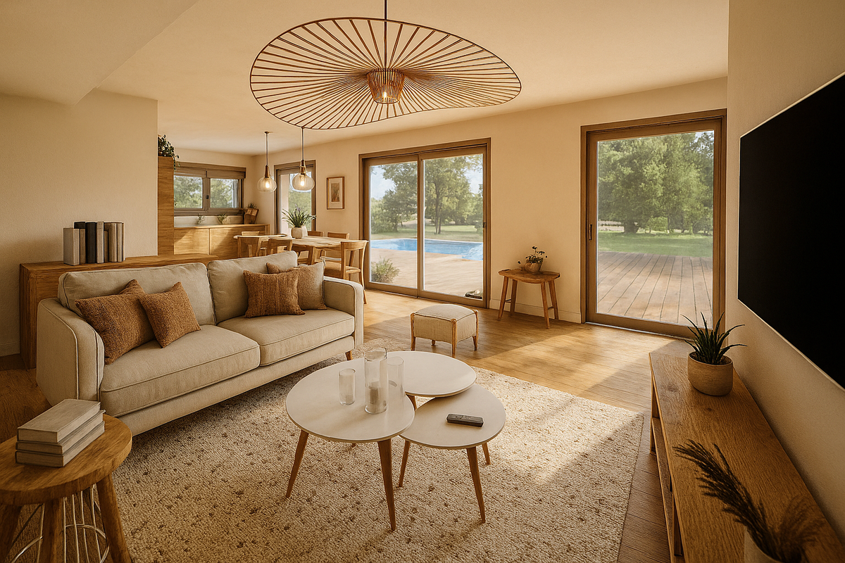 TERRAIN ET MAISONMaison neuve de plain-pied à l’architecture exceptionnelle220 m² + grand garage et carport – Parcelle de 1 900 m² piscinable – Exposition plein SudÀ la croisée des commodités et du charme de la route des vins, cette maison d’architecte neuve de plain-pied, séduit par ses volumes généreux, son agencement fonctionnel et son environnement privilégié.Elle offre :5 chambres, chacune avec salle d’eau privative et dressing, pour un confort haut de gamme,Un studio indépendant, idéal pour accueillir la famille, pratiquer une activité sportive ou télétravailler dans des conditions optimales,Une vaste pièce de vie lumineuse, ouverte sur le jardin exposé plein Sud, parfait pour une future piscine,Une cuisine ouverte, à aménager selon vos envies,Une salle de bains familiale,Un grand garage de 30 m² et un carport, permettant de stationner plusieurs véhicules.Construite selon les dernières normes énergétiques, cette maison est équipée d’un système de chauffage réversible, garantissant un confort en toutes saisons.Située en seconde ligne, sur une parcelle exceptionnelle de 1 900 m², elle offre calme, espace et proximité immédiate des commerces, écoles et axes routiers.📌 Référence : GGRSB2508