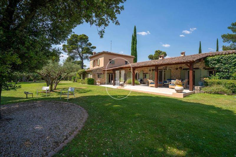 MAISONVilla provençale haut de gamme au ThoronetLes 318 m² de surfaces de cette villa sur 5 hectares de parc dont 1 hectare de jardin paysager environ répondent à toutes les attentes dans cette gamme de propriétés. L’habitation est complétée d’un double garage attenant avec buanderie de 47 m² et des caves aménageables de 95 m².Située sur une colline et orientée au sud, la villa bénéficie de magnifiques vues dégagées, notamment depuis l’époustouflante piscine de 14 x 6 mètres environ.La maison, dont certaines parties ont des murs très épais, est partie d’une bastide plus modeste à l’origine datant du XVIIIe siècle. D’importantes extensions ont été réalisées en 1960, et l’ensemble de la demeure a été rénové en 2005 avec des matériaux et des techniques de pointe pour l’époque.Les lumineux intérieurs développent un véritable hall d’entrée avec toilette d’invités et penderie, un vaste salon avec grande cheminée à insert, une cuisine ouverte entièrement équipée donnant sur la salle à manger avec cheminée également, 5 chambres dont 3 avec salle de bain et/ou douche attenante.La suite parentale se trouve dans une aile indépendante au rez-de-chaussée et comprend un grand dressing, une spacieuse salle de bains avec douche et baignoire, ainsi qu’un WC séparé.Deux autres chambres d’amis avec salles de bains attenantes se trouvent également au rez-de-chaussée. Deux chambres supplémentaires sont disponibles à l’étage avec toilette et salle de bain en commun.Plusieurs pièces au sous-sol abritent les installations techniques, sans oublier le garage double attenant, au rez-de-chaussée.Les grandes terrasses qui entourent la maison invitent à profiter du jardin tout au long de l’année, où vous trouverez à chaque saison et selon le moment de la journée, votre coin préféré.Les extérieurs, agrémentés de pelouses irriguées, accueillent 350 oliviers et un verger composé d’une grande variété d’arbres fruitiers tels que figuiers, amandiers, grenadiers et cerisiers. En complément du garage attenant à la villa, une grange peut accueillir jusqu’à 6 voitures.Les connaisseurs sauront apprécier cette propriété à sa juste valeur.Ce bien est proposé par notre agence de GrimaudGrâce à notre partenariat exclusif avec Knight Frank, leader mondial de l’immobilier de prestige, Janssens Immobilier offre à chaque propriété une visibilité internationale exceptionnelle. Cette alliance renforce notre expertise locale par la puissance d’un réseau présent dans plus de 50 pays.Les informations sur les risques auxquels ce bien est exposé sont disponibles sur le site Géorisques : (Lien supprimé)Conformément à la réglementation en vigueur, la surface DPE de ce bien est établie sur la base d’un mesurage normé de la surface habitable. Ce mesurage peut différer de la surface totale mesurée avec précision par nos équipes commerciales.