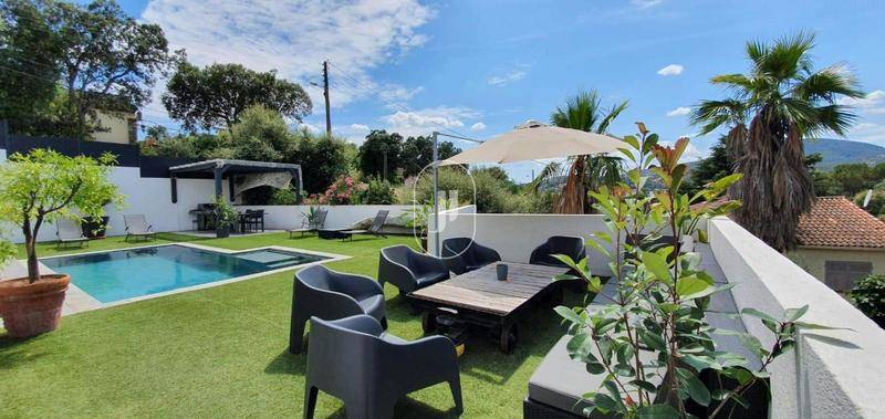 MAISONNichée au cœur d’un quartier résidentiel calme et préservé, cette villa entièrement rénovée offre un cadre de vie rare, sans aucun vis-à-vis ni nuisance sonore.L’accès se fait par un portail électrique en fer forgé ouvrant sur un parking pavé. Bénéficiant d’une exposition plein sud, la propriété séduit par ses généreuses terrasses entourant une piscine et un jacuzzi, avec de vastes espaces ombragés grâce à un élégant débord de toiture.Le jardin, soigneusement paysagé, accueille un boulodrome, un potager et une quinzaine d’oliviers, créant une atmosphère méditerranéenne raffinée.La villa dispose de prestations récentes et complètes : menuiseries neuves en double vitrage, isolation renforcée, électricité, plomberie et fosse septique entièrement refaites.Les intérieurs, baignés de lumière, proposent un vaste séjour avec cuisine ouverte entièrement équipée, un espace salon TV et une salle à manger conviviale.De plain-pied, une suite parentale avec dressing et salle de bains complète (douche à l’italienne, baignoire et WC), ainsi qu’un bureau indépendant.À l’étage, trois chambres, une grande salle de bains et des WC séparés.Le sous-sol comprend une chambre indépendante avec salle d’eau, idéale pour recevoir, ainsi qu’un grand garage doté d’une porte électrique.Un bien rare alliant confort, élégance et qualité de vie.Villa à vendre par l’agence immobilière de Sainte-Maxime.Grâce à notre partenariat exclusif avec Knight Frank, leader mondial de l’immobilier de prestige, Janssens Immobilier offre à chaque propriété une visibilité internationale exceptionnelle. Cette alliance renforce notre expertise locale par la puissance d’un réseau présent dans plus de 50 pays.Les informations sur les risques auxquels ce bien est exposé sont disponibles sur le site Géorisques : (Lien supprimé)Conformément à la réglementation en vigueur, la surface DPE de ce bien est établie sur la base d’un mesurage normé de la surface habitable. Ce mesurage peut différer de la surface totale mesurée avec précision par nos équipes commerciales.
